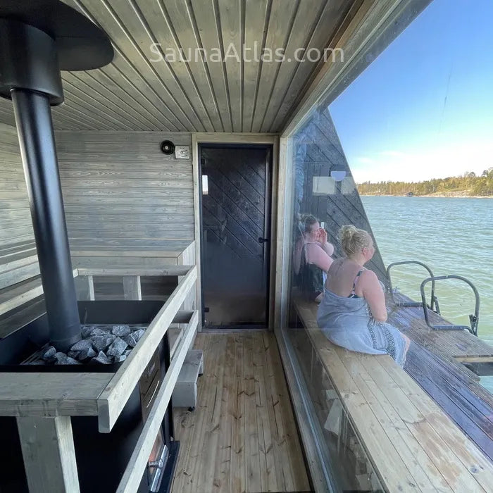 Experience an unique design floating sauna, which the world famous IShowSpeed enjoyed for 1,5 hours during his trip to Finland, in the most beautiful sea landscape of Helsinki. Come and relax in the warmth of the wood-fired sauna and refresh yourself in the Baltic sea!